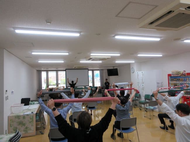 ㈱Doctor’s Fitness様にお越しいただき 、腰痛肩こり改善セミナーを開催いたしました。セミナーでは実際に体を動かし肩こり・腰痛を防ぐストレッチやトレーニング法を教えていただきました。